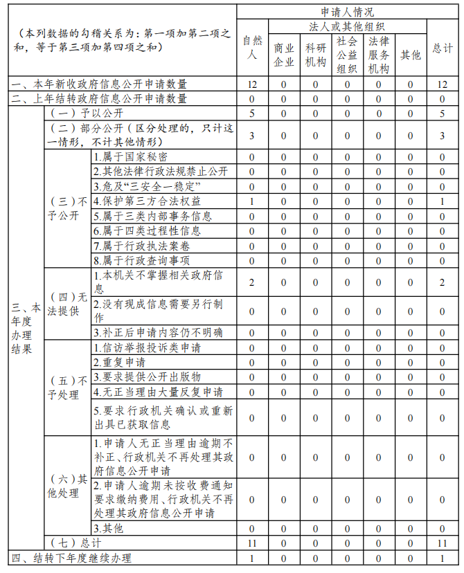 做好政府信息依申请公开工作,强化对申请补正、法核、答复出具等关键环节的全流程管理,切实保障办理程序规范、响应及时、内容准确。2025年,我局共受理信息公开申请12件(其中网上申请8件、信函申请4件),11件均按规定答复办结,1件结转至下年度继续办理。